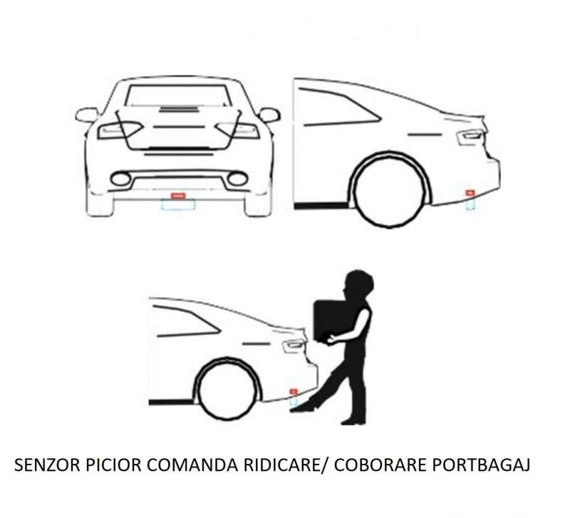 Un senzor optional ce permite comanda pentru sistemul de ridicare/ coborare portbagaj fara utilizarea mainilor facand usor de inchis/ deschis portbagajul prin balansarea piciorului sub bara.
