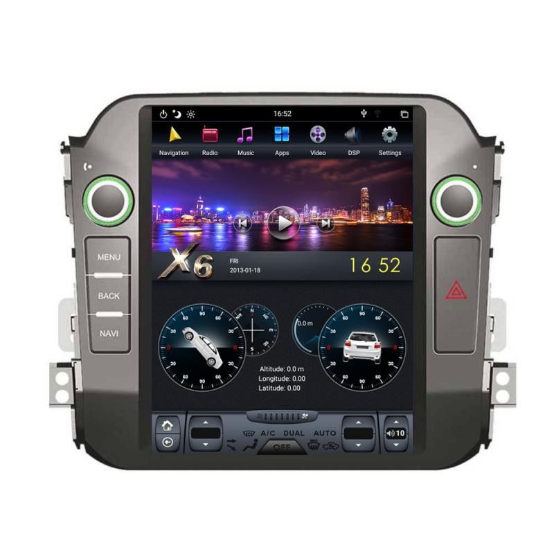 Dedikált navigáció a 2010-2015-ös Kia Sportage modellekhez Android 9 operációs rendszerrel, hatalmas, Tesla-szerű, 9,7 hüvelykes képátlójú képernyővel, Bluetooth CarKit és A2DP csatlakozással, műholdas GPS-szel, USB/SD-vel, internettel