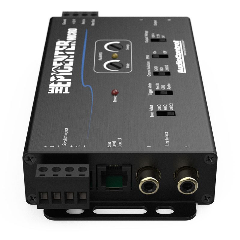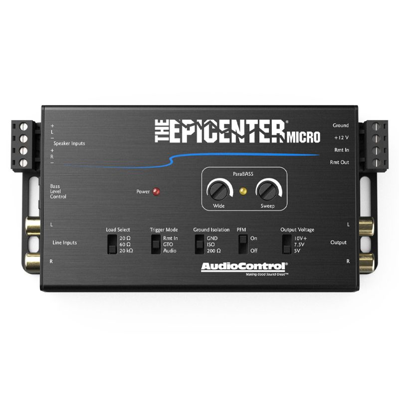 Epicenter Micro combina legendara restaurare a basului digital de la AudioControl cu capabilitatile de integrare OEM de renume mondial. Dispunand de o etapa de intrare la nivel de difuzor cu incarcari de impedanta selectabile, precum si intrari traditionale la nivel de linie, Epicenter Micro scoate la iveala cel mai bun bas din orice sistem. Modurile de declansare includ intrarea traditionala de la distanta +12 V, Detectie de semnal GTO™ si detectie semnal audio. Filtrul subsonic PFM poate fi ocolit pentru cei cu adevarat dedicati, iar setarea tensiunii de iesire de 10V+ ii atrage doar pe cei mai curajosi dintre noi. Utilizati telecomanda ACR-4 inclusa pentru a regla independent restaurarea basului si nivelul de iesire.