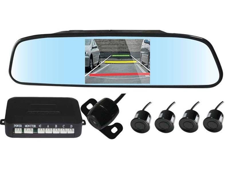 Pachet format din oglinda auto cu ecran de 4.3' camera video si senzori de parcare pentru mersul cu spatele