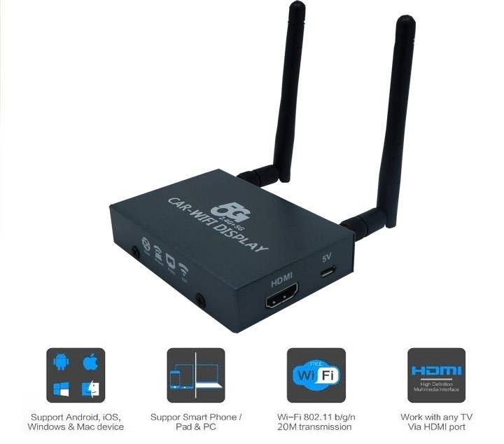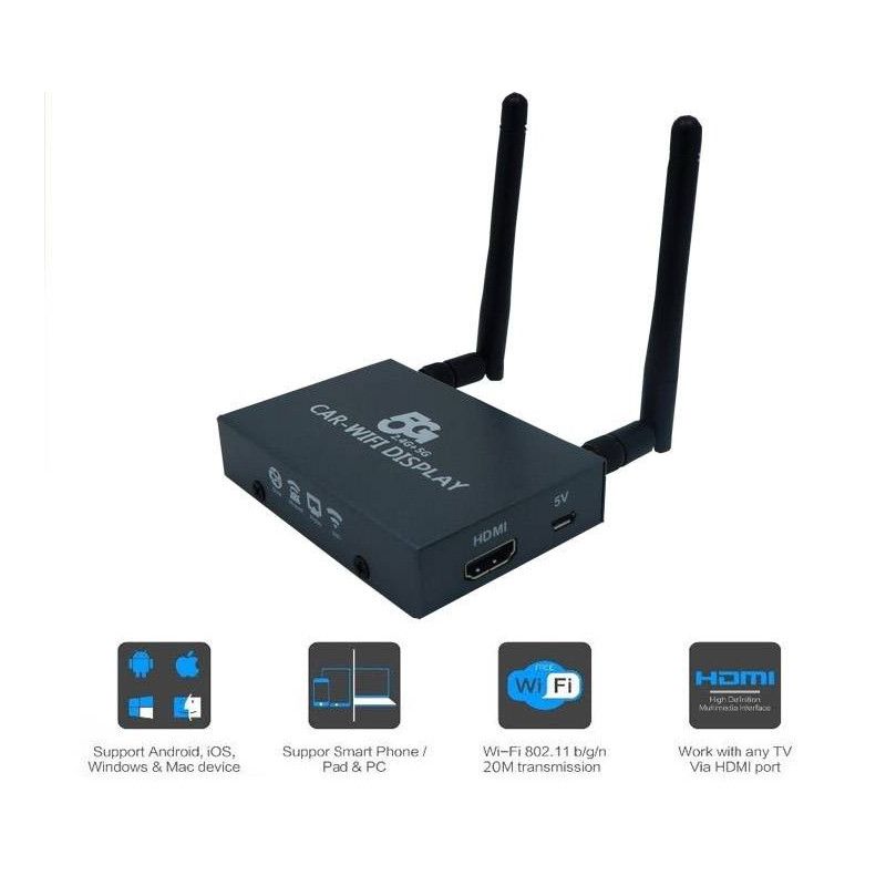 Ez az eszköz lehetővé teszi Android, iOS vagy Windows Phone készülék képének megjelenítését RCA kompozit audio-video bemenettel rendelkező monitoron Miracast, AirPlay vagy WiDI használatával.