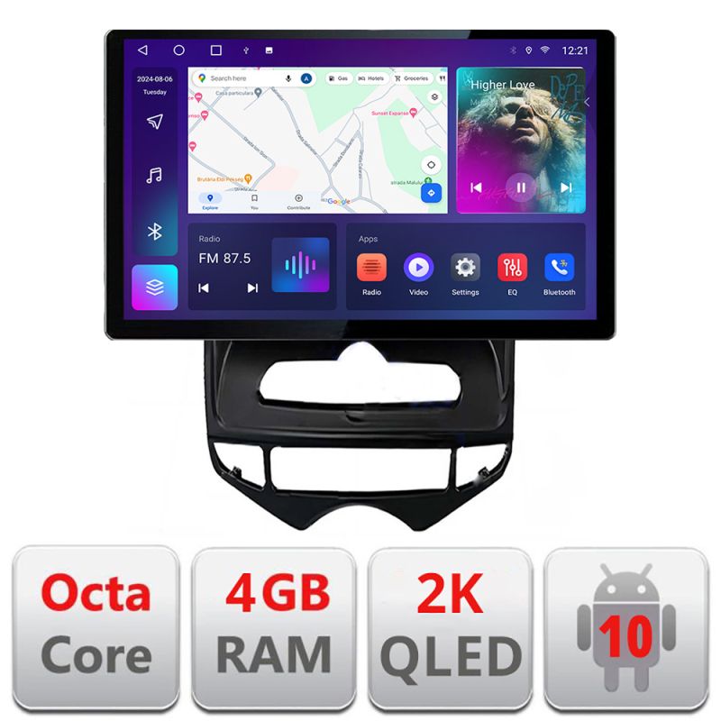 Android 10 ∙ Nyolcmagos processzor ∙ 4 GB RAM + 32 GB ROM ∙ 4G és WiFi ∙ GPS ∙ 360°-os kamerabemenet ∙ USB DVR kamerabemenet