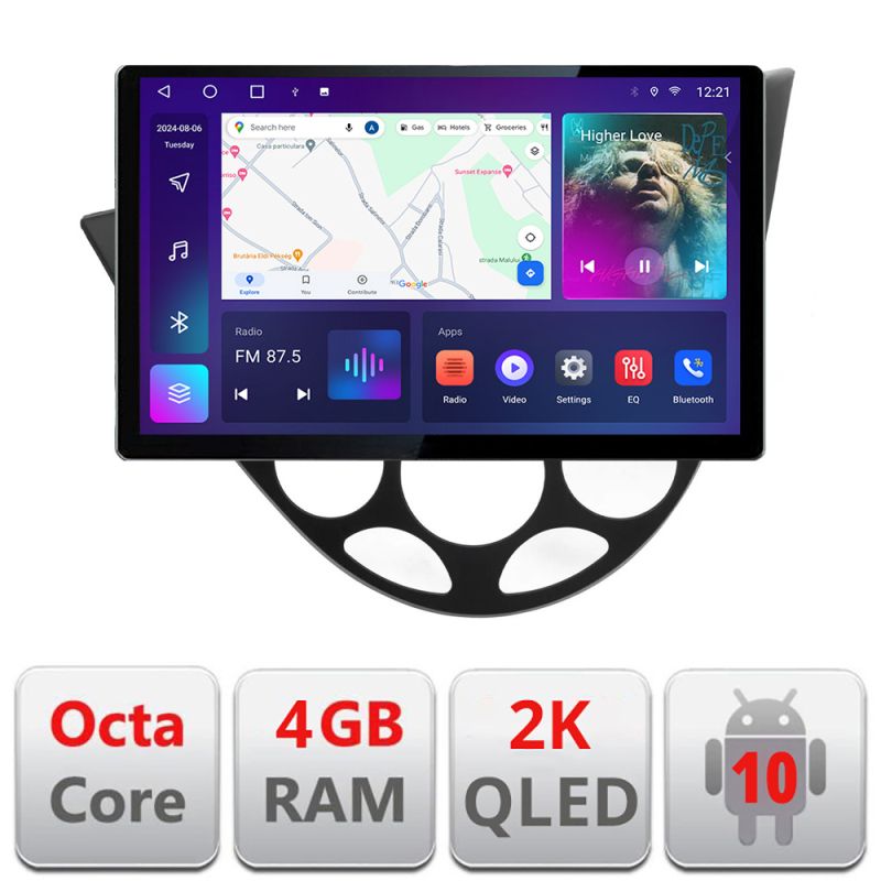 Android 10 ∙ Nyolcmagos processzor ∙ 4 GB RAM + 32 GB ROM ∙ 4G és WiFi ∙ GPS ∙ 360°-os kamerabemenet ∙ USB DVR kamerabemenet
