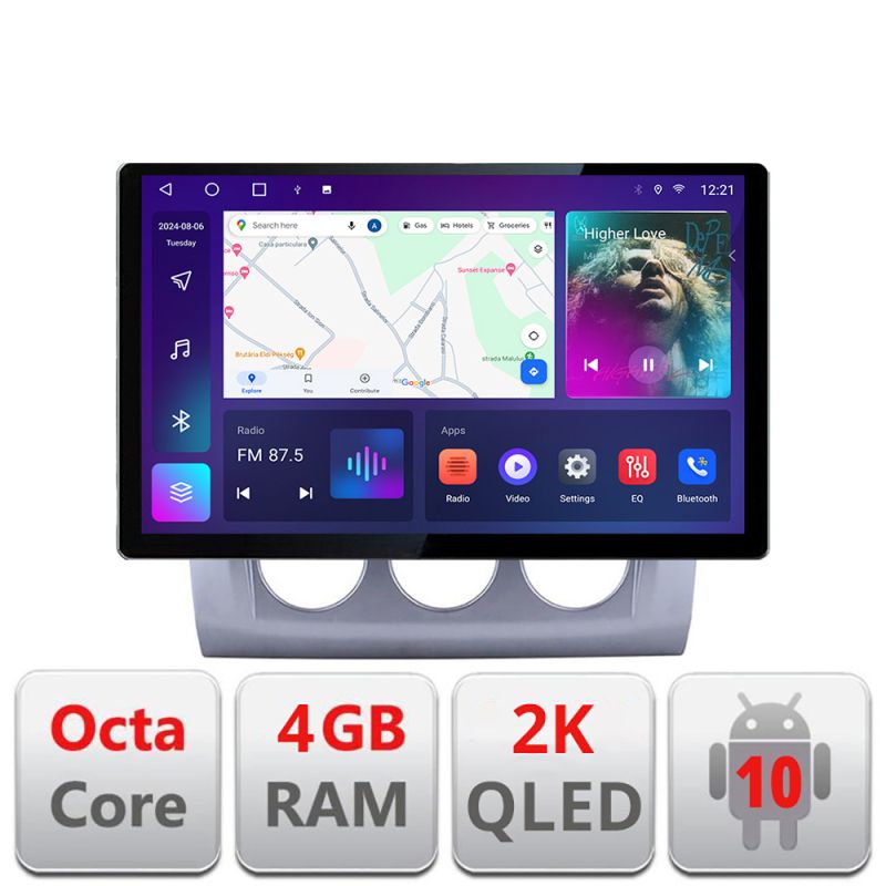 Android 10 ∙ Nyolcmagos processzor ∙ 4 GB RAM + 32 GB ROM ∙ 4G és WiFi ∙ GPS ∙ 360°-os kamerabemenet ∙ USB DVR kamerabemenet