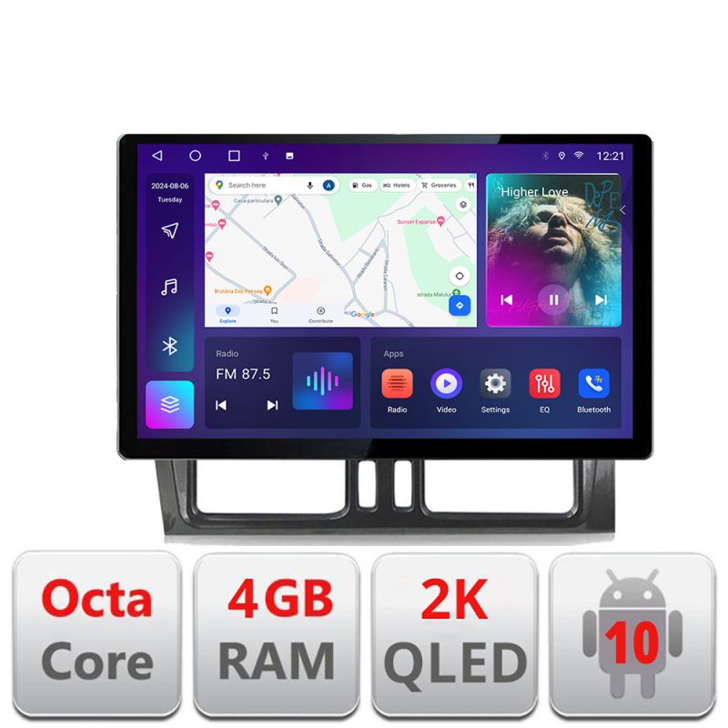 Android 10 ∙ Nyolcmagos processzor ∙ 4 GB RAM + 32 GB ROM ∙ 4G és WiFi ∙ GPS ∙ 360°-os kamerabemenet ∙ USB DVR kamerabemenet