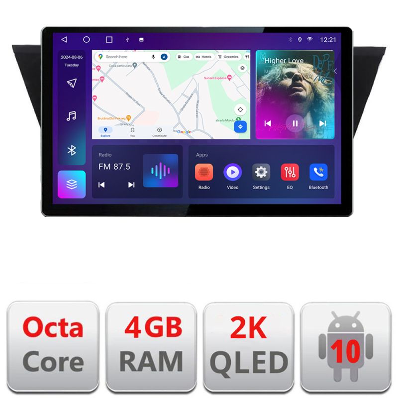 Android 10 ∙ Nyolcmagos processzor ∙ 4 GB RAM + 32 GB ROM ∙ 4G és WiFi ∙ GPS ∙ 360°-os kamerabemenet ∙ USB DVR kamerabemenet