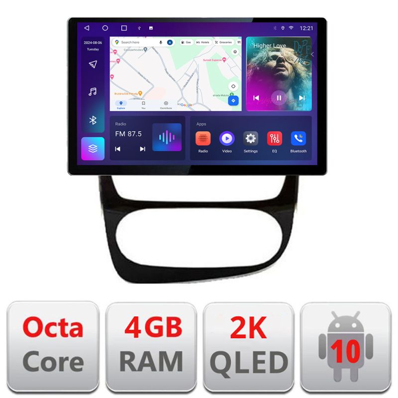Android 10 ∙ Nyolcmagos processzor ∙ 4 GB RAM + 32 GB ROM ∙ 4G és WiFi ∙ GPS ∙ 360°-os kamerabemenet ∙ USB DVR kamerabemenet