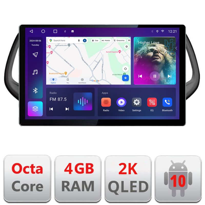 Android 10 ∙ Nyolcmagos processzor ∙ 4 GB RAM + 32 GB ROM ∙ 4G és WiFi ∙ GPS ∙ 360°-os kamerabemenet ∙ USB DVR kamerabemenet