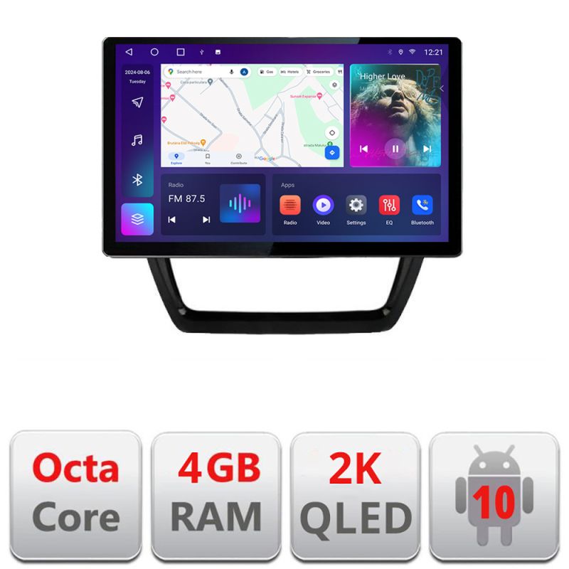 Android 10 ∙ Nyolcmagos processzor ∙ 4 GB RAM + 32 GB ROM ∙ 4G és WiFi ∙ GPS ∙ 360°-os kamerabemenet ∙ USB DVR kamerabemenet
