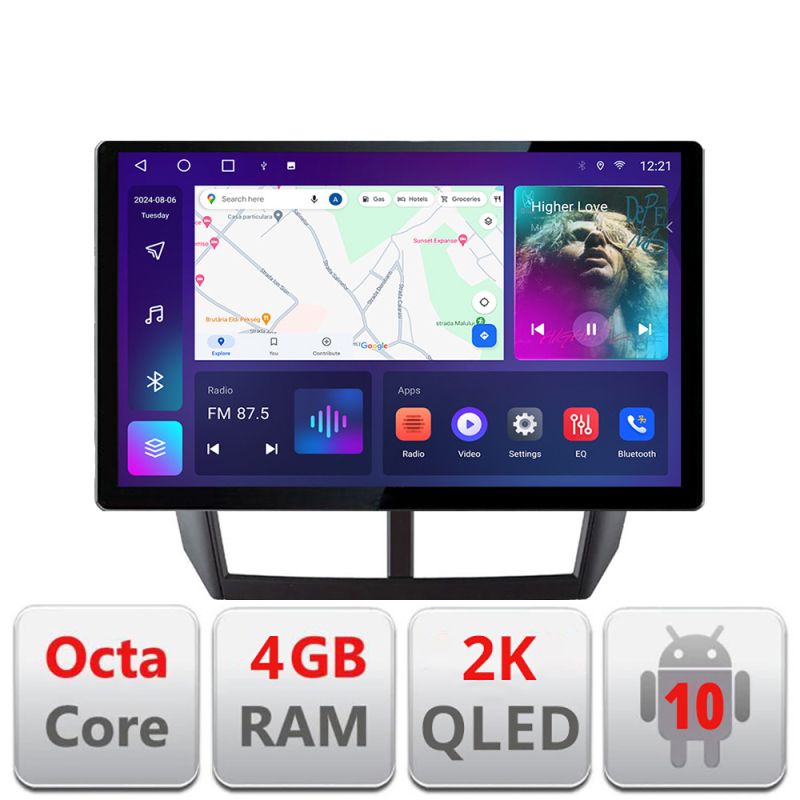 Android 10 ∙ Nyolcmagos processzor ∙ 4 GB RAM + 32 GB ROM ∙ 4G és WiFi ∙ GPS ∙ 360°-os kamerabemenet ∙ USB kamera DVR bemenet