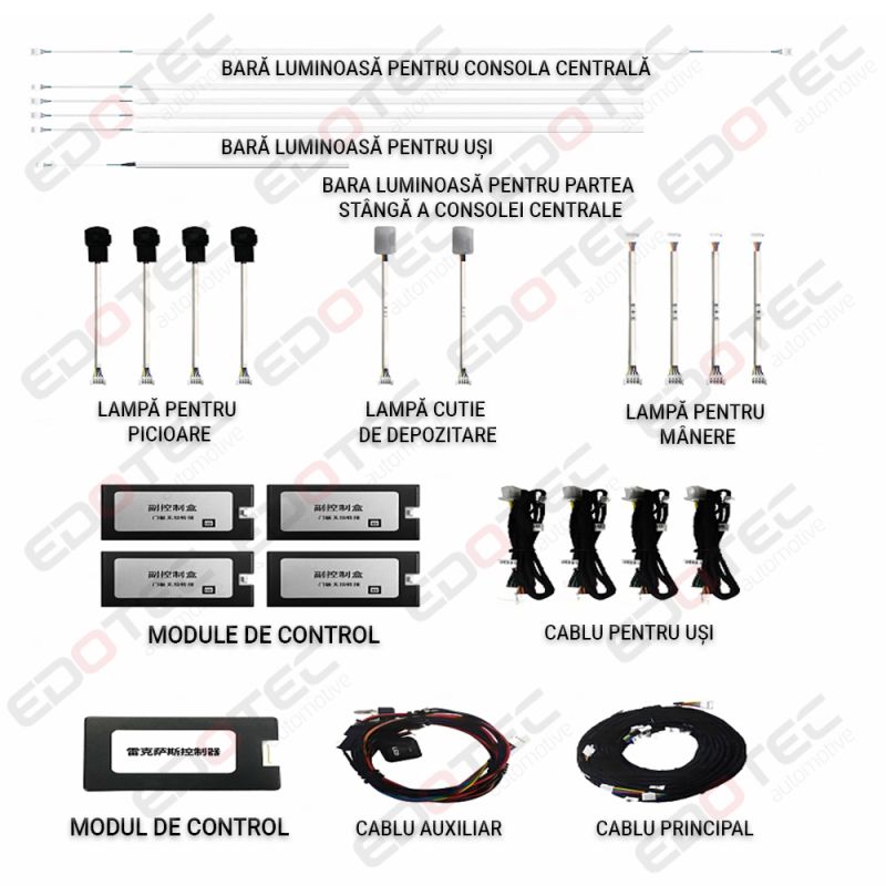 Conductor acrilic, LED-uri RGB incorporate, importate din Taiwan, lumina este difuză și cu protecție pentru ochi. Oferă o experiență de condus mai confortabilă și personalizată pentru proprietarii de mașini.