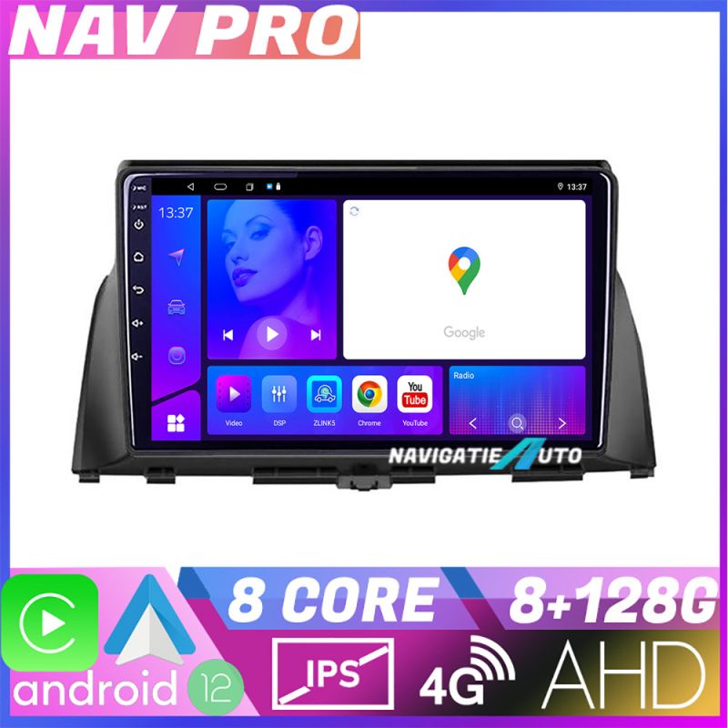 Android 12 ∙ Nyolcmagos processzor ∙ 8 GB RAM + 128 GB ROM ∙ 4G és WiFi ∙ GPS ∙ AHD kamera bemenet ∙ USB DVR kamera bemenet