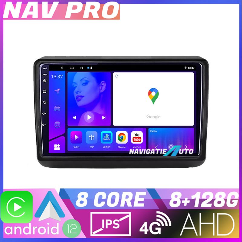 Android 12 ∙ Nyolcmagos processzor ∙ 8 GB RAM + 128 GB ROM ∙ 4G és WiFi ∙ GPS ∙ AHD kamera bemenet ∙ USB DVR kamera bemenet