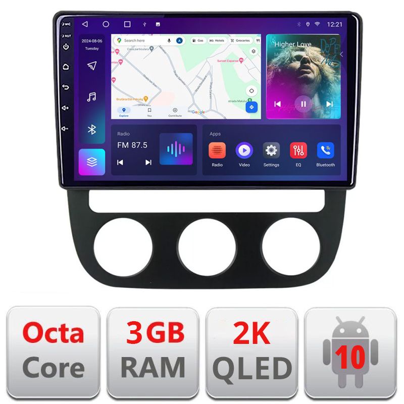 Navigatie VW Golf 5 2004-2010 clima automatica Android ecran Qled 2K Octa Core 3+32 carplay android auto KIT-golf5-automatic+EDT-E310-2K