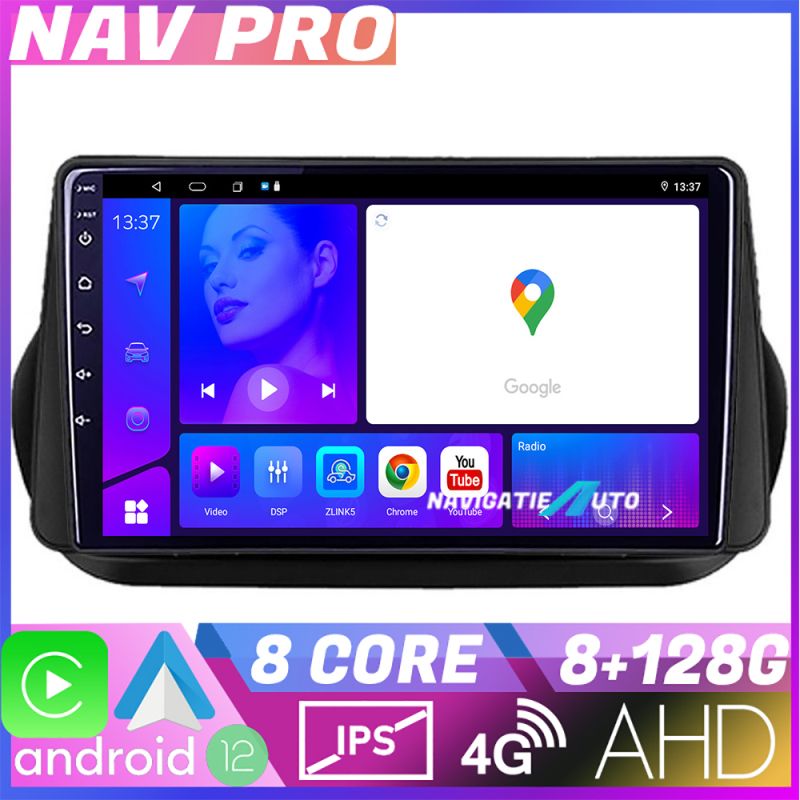 Android 12 ∙ Nyolcmagos processzor ∙ 8 GB RAM + 128 GB ROM ∙ 4G és WiFi ∙ GPS ∙ AHD kamera bemenet ∙ USB DVR kamera bemenet