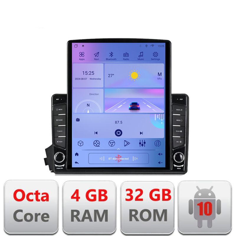 Android 10 ∙ Nyolcmagos processzor ∙ 4 GB RAM + 32 GB ROM ∙ 4G és WiFi ∙ GPS ∙ 360°-os kamerabemenet ∙ USB DVR kamerabemenet ∙ 9,7 hüvelykes hatalmas függőleges képernyő