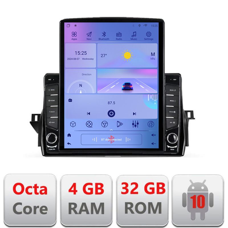 Android 10 ∙ Nyolcmagos processzor ∙ 4 GB RAM+32 GB ROM ∙ 4G és WiFi ∙ GPS ∙ 360°-os kamerabemenet ∙ USB kamera DVR bemenet ∙ hatalmas, 9,7 hüvelykes függőleges képernyő