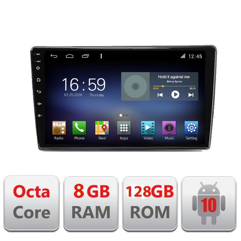 Android 10 ∙ procesor Octa Core Intel Spectrum UIS7862 1.87Ghz∙ memorie 6GB RAM+128GB ROM ∙ slot card SIM 4G ∙WiFi ∙ GPS ∙ intrare de cameră spate ∙ Radio cu RDS ∙ DSP ∙ intrare USB camera DVR ∙ funcție CarPlay